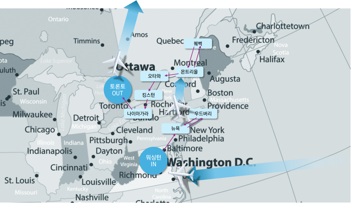 ♣ 뉴욕-몬트리올 항공이용 장거리 버스이동의 불편함 해결