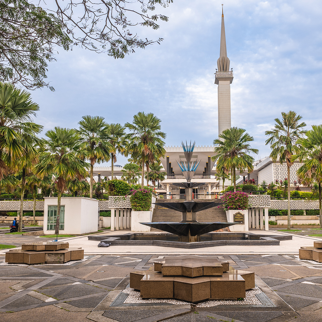 쿠알라룸푸르를 대표하는 국립 모스크는 멀리서도 눈에 띄는 뾰족한 첨탑이 인상적인 장소이다.모스크의 메인 돔은 18각의 별 모양으로 이루어져있는데, 이는 이슬람의 5개 기둥과 말레이시아의 13개 주를 상징한다. 모스크 내부에 입장하기 위해서는 입장 시간을 엄수해야 하며, 입구에서 대여해 주는 보라색 차도르를 입고 들어가야 한다. 내부에는 시원한 분수와 화려함이 느껴지는 예배당이 자리하고 있다.